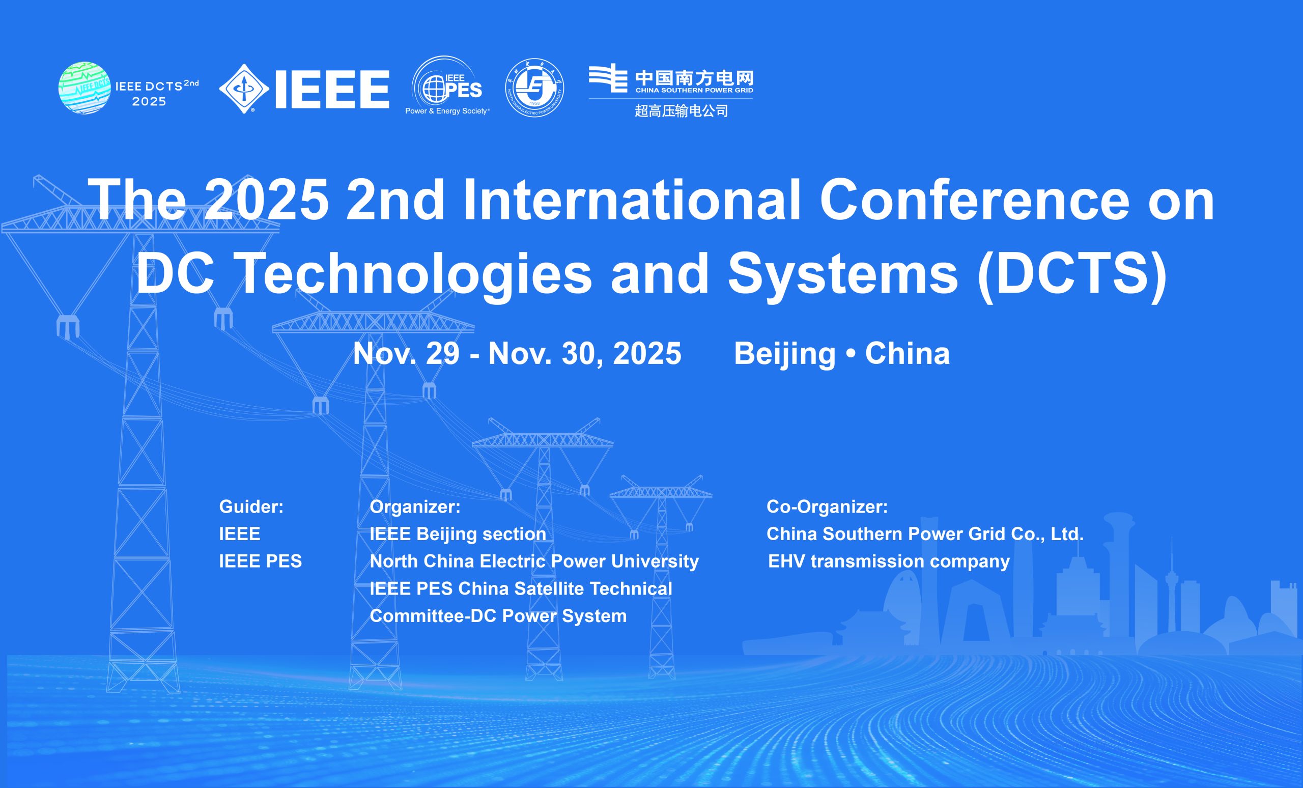 The 2025 2nd International Conference on DC Technologies and Systems (DCTS) will be held at the Wyndham Hotel in Beijing Longcheng from November 29, 2025 to November 30, 2025. IEEE DCTS is the first international conference on DC technologies and systems by IEEE. The IEEE DCTS conference is the world’s most influential international conference in the field of DC technologies. It provides a high-level international open exchange platform for integration of industry, academia, research and application for experts, scholars, and corporate representatives in the global DC technology field, promoting the sharing of the latest research findings, technological trends, and application experiences in the DC domain.